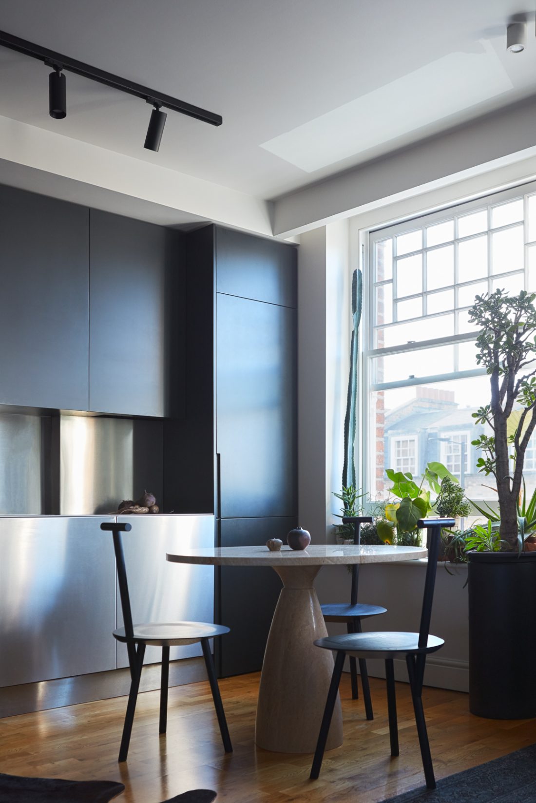 Designed to follow the needs and unique aesthetic of a design lover, this 37 sqm studio in Islington, is the synonym of refinement and luxury. Comprising an entrance hall, bathroom and open plan living room, kitchen and bedroom celebrates materiality through the diverse use of textures, making the ideal backdrop for the design pieces of the apartment.